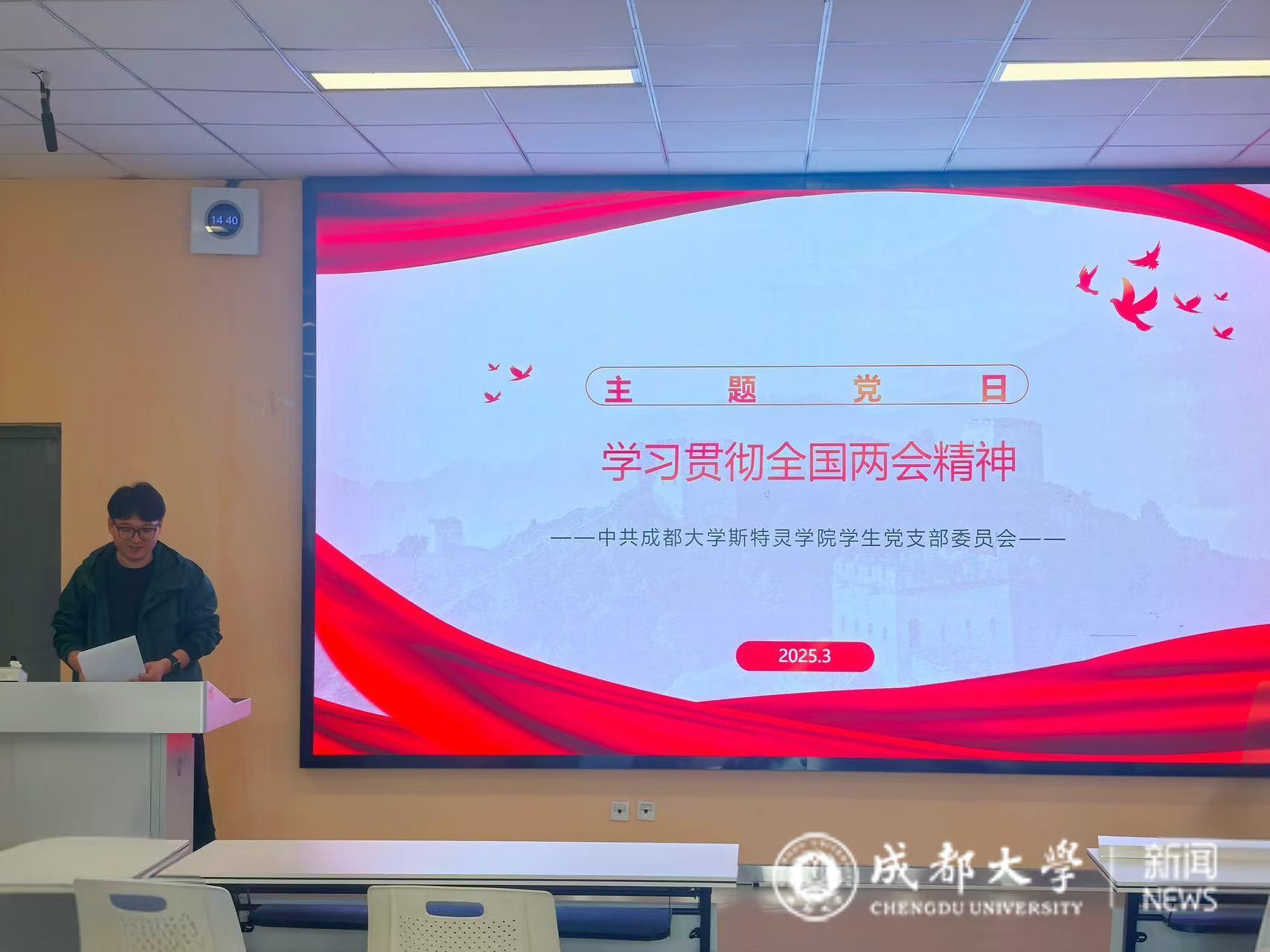 (文/毛竟伊 图/黄钰襄)2025年3月24日,成都大学斯特灵学院学生党支部委员会开展“学习贯彻全国两会精神”主题党日活动,支部全体党员参加。