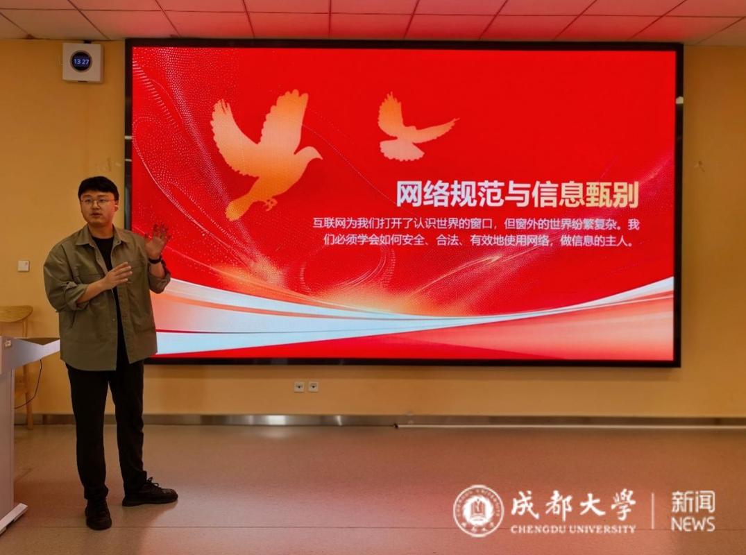随后郝巍同志以“网络空间的政治判断力与意识形态安全”为题开展专题授课。他指出,互联网已成为意识形态斗争的主战场,算法推荐、信息茧房、深度伪造等技术手段使网络舆论环境日趋复杂。他结合典型案例,剖析了网络信息被恶意操纵、舆论被定向引导的常见手法,揭示出片面信息对青年认知的侵蚀风险,强调党员必须在纷繁网络信息中保持政治敏锐性,不被情绪化舆论裹挟,不随意传播未经核实的内容。他着重指出,网络空间不是法外之地,维护国家主权与领土完整是每一名党员不可逾越的政治底线,要始终坚定维护国家统一,坚持一个中国原则,在虚拟空间中同样站稳政治立场,以清醒头脑和过硬定力守护意识形态安全,做信息的主人而非流量的附庸。