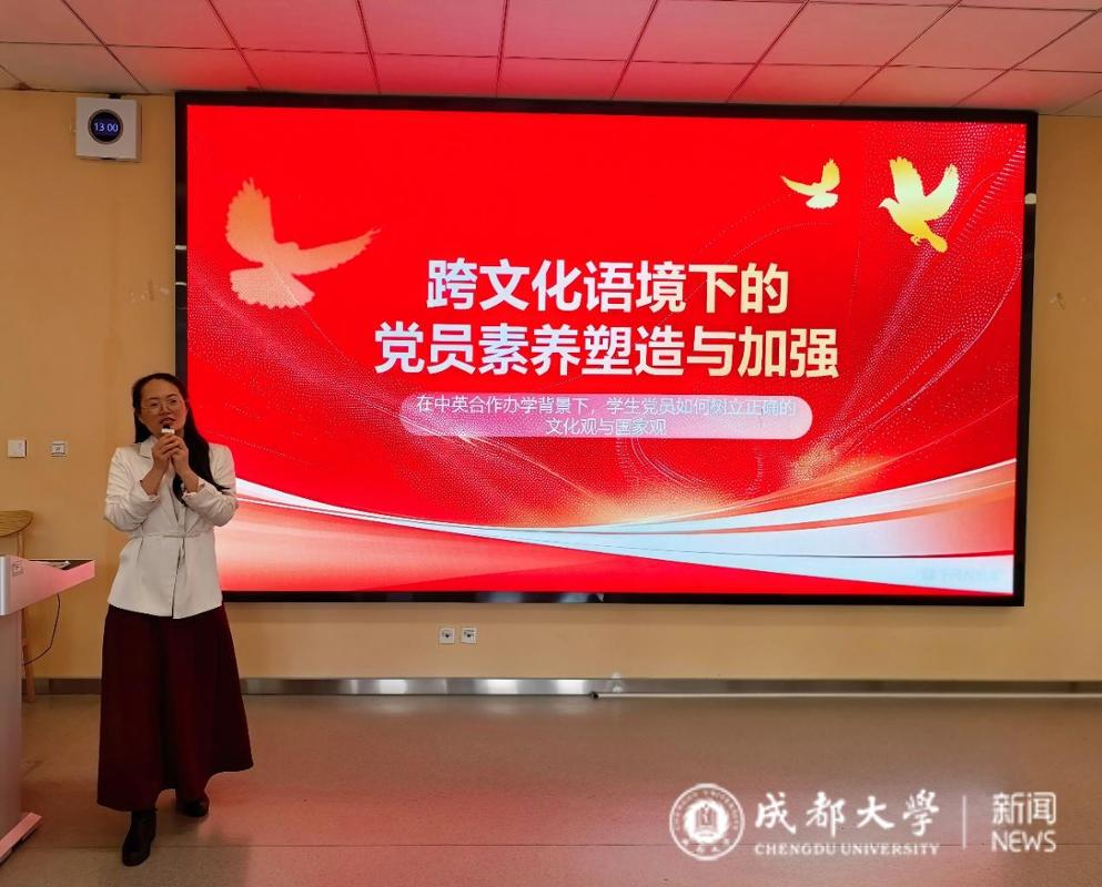 刘亚玲同志围绕“跨文化语境下的党员素养塑造与加强”主题,讲授专题党课。她结合自身实践经历,以生动鲜活的国外案例为切入点,剖析了不同文化背景下的认知差异与观念碰撞。她指出,中英合作办学作为拓宽国际视野、促进文化交流的重要平台,同时也是意识形态碰撞的前沿阵地。她强调,面对跨文化交流中的挑战,青年党员作为新时代青年的骨干力量,更要筑牢理想信念之基,树立正确的文化观、国家观和价值观,在跨文化交流交融中保持清醒头脑、明辨是非界限、站稳政治立场,努力成为兼具国际视野与家国情怀的新时代合格党员。
