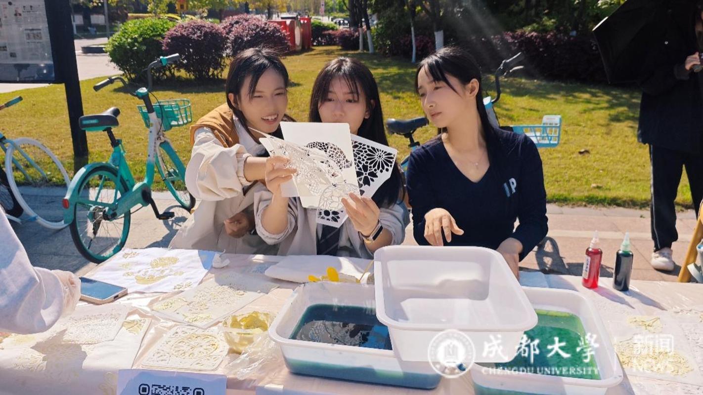 不同专业的同学积极参与,在扎染方巾上留下属于自己的色彩印记,也在慢节奏的创作中感受情感流动与文化温度。活动结束后,部分优秀扎染作品将被拼接成文化交融的标志,在学院公共区域进行展示,成为学院国际化与包容性的生动注脚。