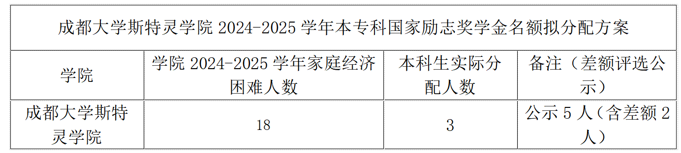 成都大学斯特灵学院2024-2025学年本专科国家励志奖学金名额拟分配方案公示