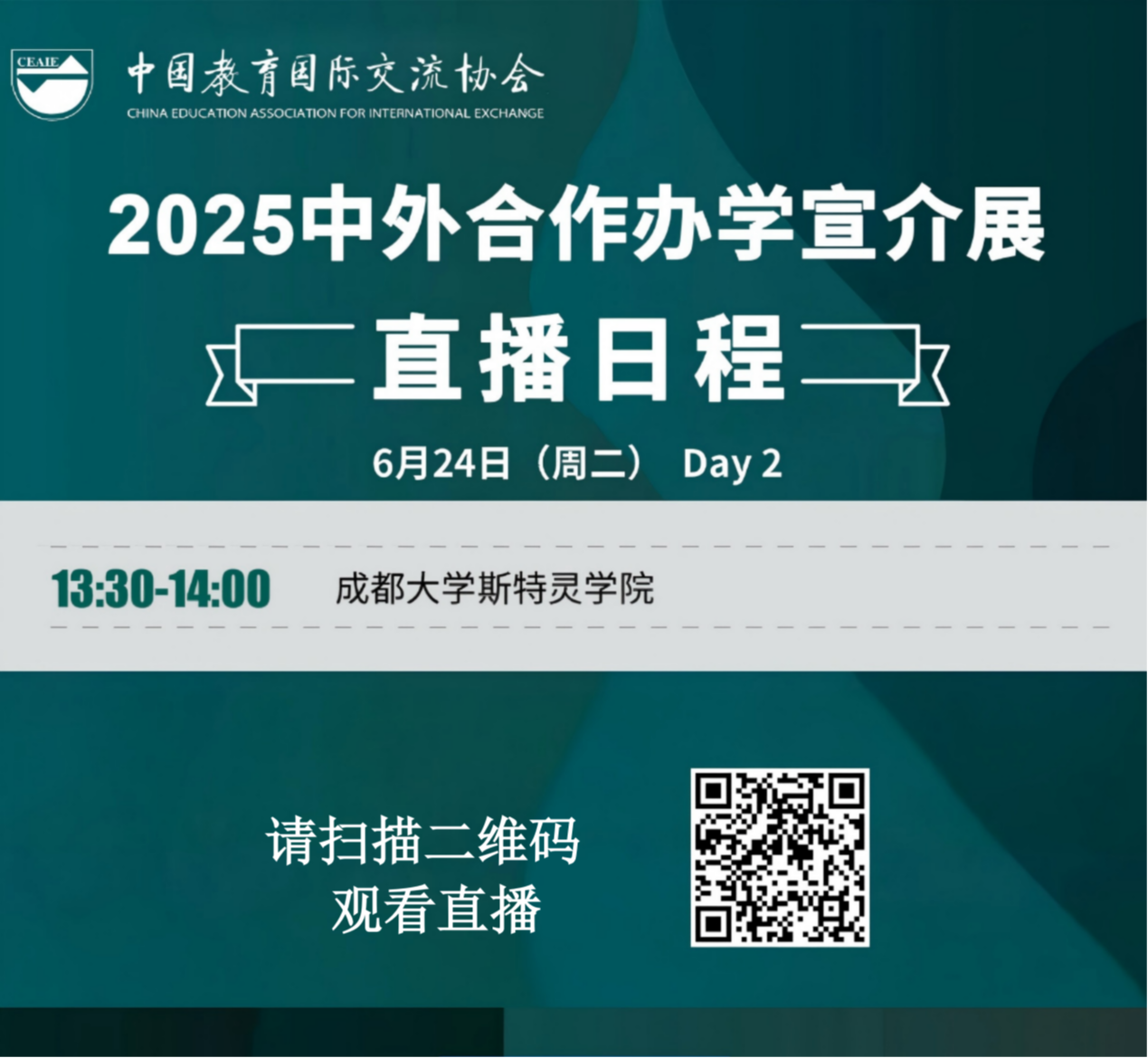 (2)6月24日(周二)13:30—14:00我院将在“2025中外合作办学宣介展”进行招生直播,欢迎大家关注: