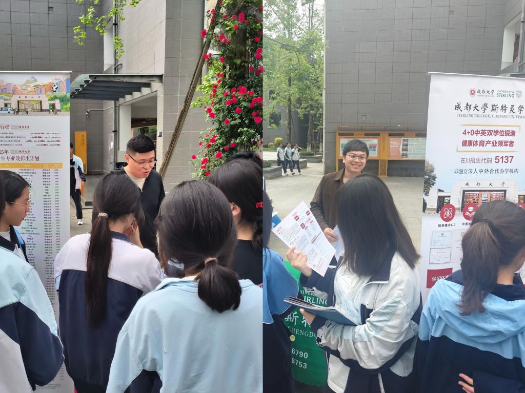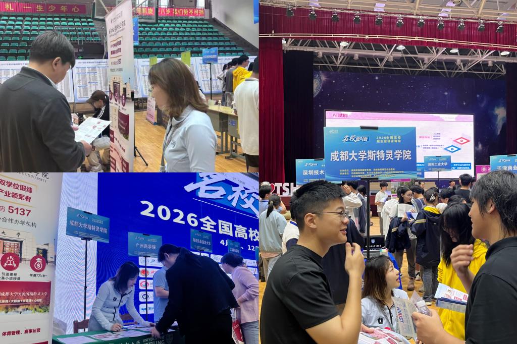 2026年4月11日至12日,成都大学斯特灵学院招生宣传团队先后走进湖南省长沙市四所中学,并参与了在成都市和绵阳市举办的两场招生宣传展,积极推广学院招生录取政策;4月15日至17日,学院招生宣传团队与兄弟学院联合走进成都市九所中学开展招生宣传活动,重点宣传成都大学2026年招生录取政策。
